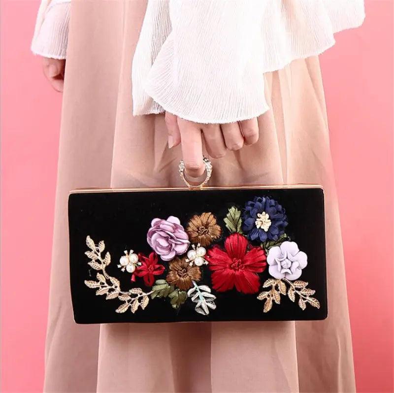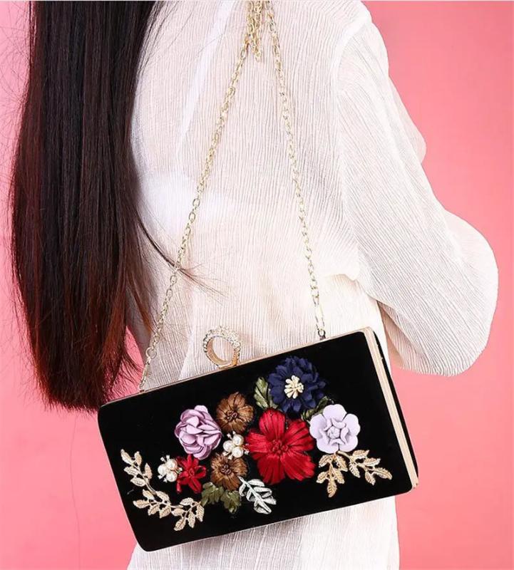 Flowers Diamond Ring Evening Clutch Bag With Chain MN835