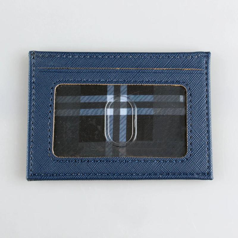 A minimalist slim wallet designed for front pocket use, holds cards securely.