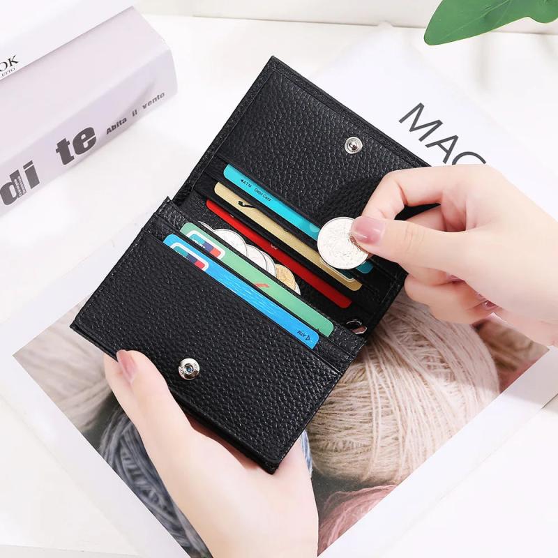This cardholder folded wallet purse is made of high-quality genuine leather, providing durability and a luxurious feel.