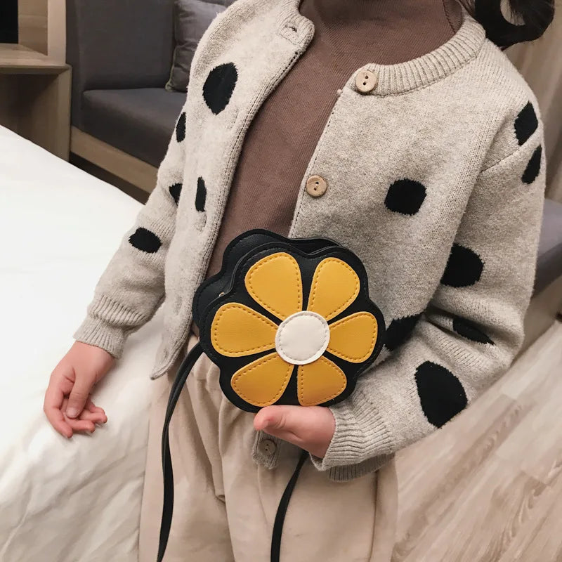 Adorable little girls flower zipper coin purse made of PU leather. Perfect for young children to carry their coins and small items. Comes with a mini shoulder strap for easy carrying.