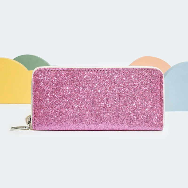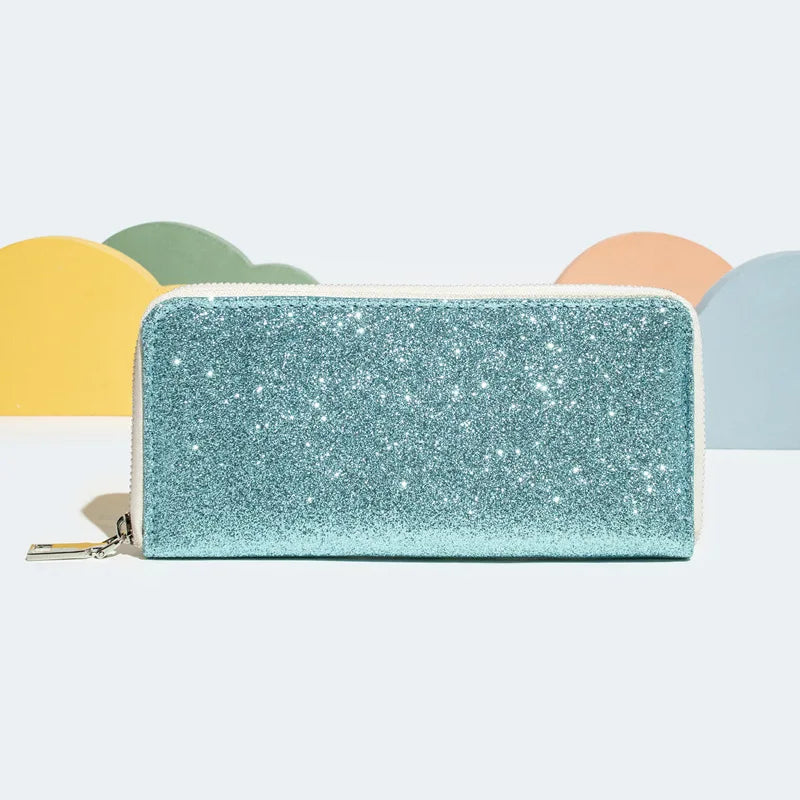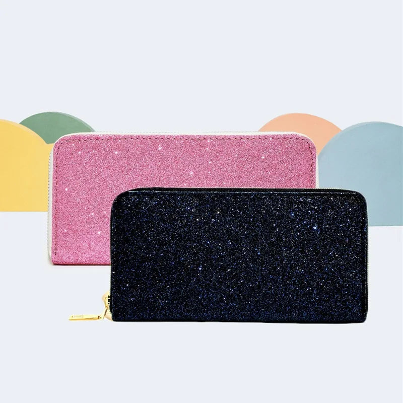Glitter Clutch Bag Large Capacity Zipper Purse PU Leather Hand Wallet