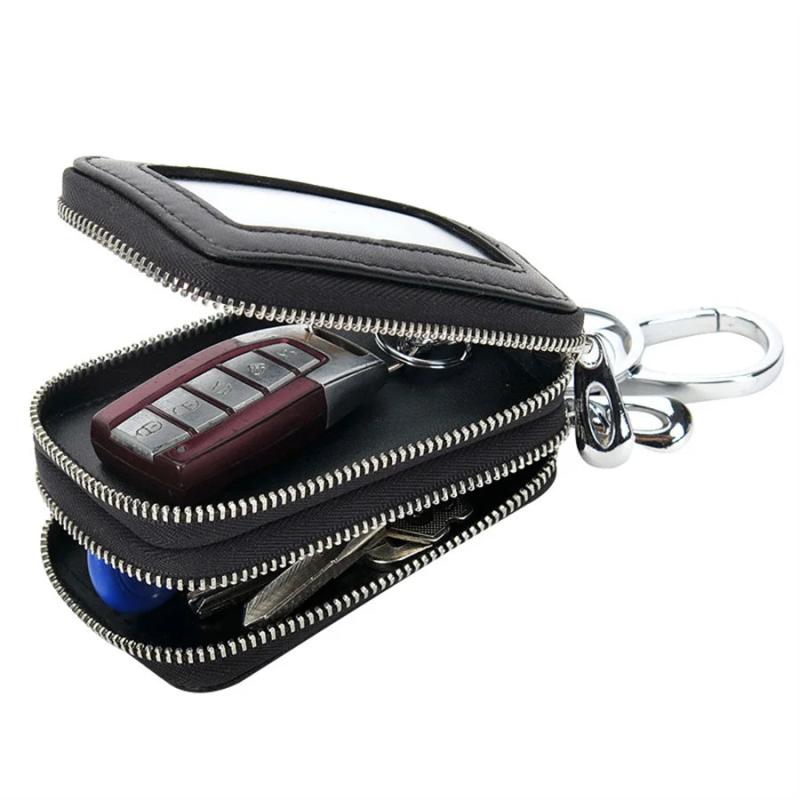 Keep your car keys organized and secure with this double-layer goatskin woven key purse. This high-capacity key wallet features a zippered closure and can be worn around your waist for easy access.