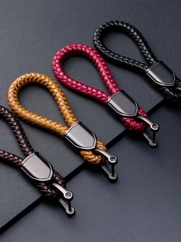 Hand Woven Leather Car Key Chain with Metal Clasp