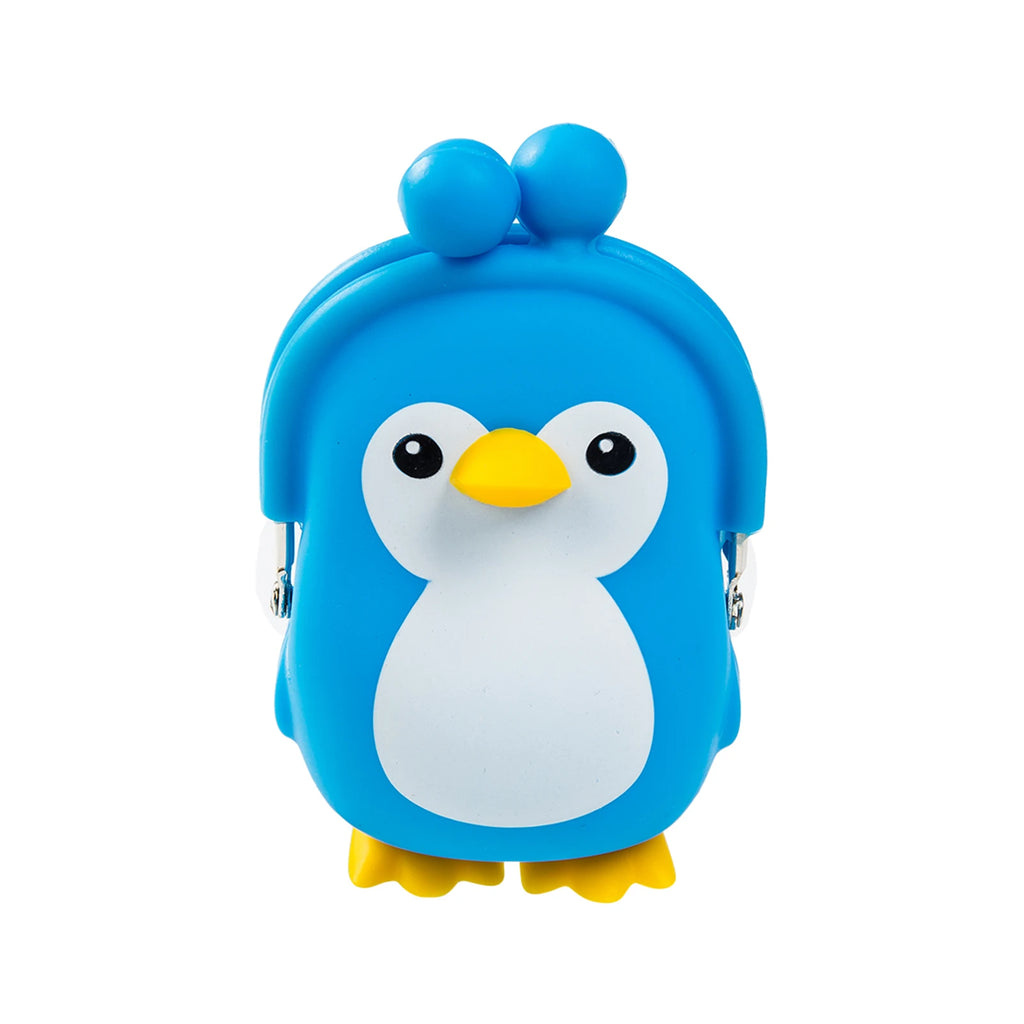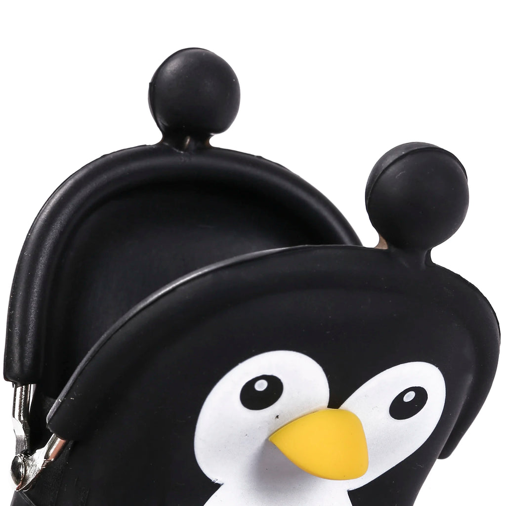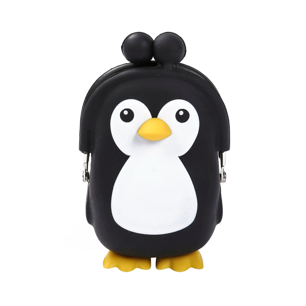This children silicone coin purse features a cute penguin design and is perfect for storing coins, cash, and keys in a portable way.