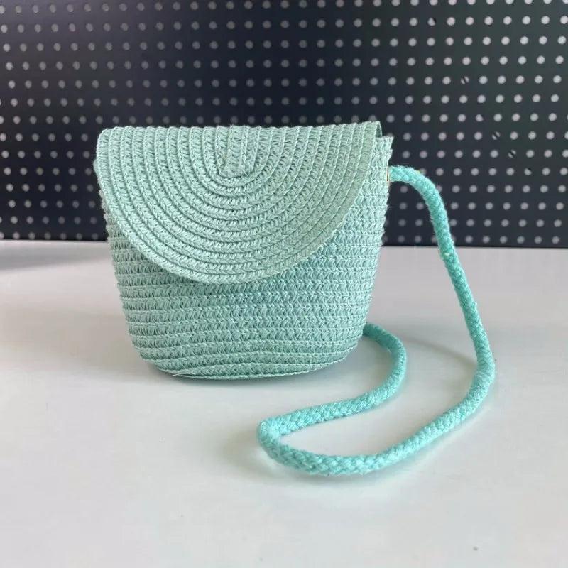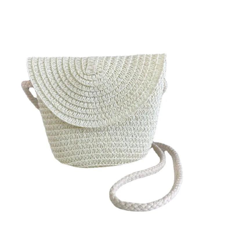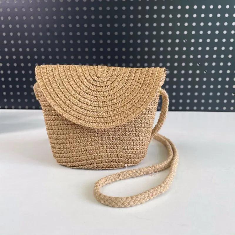 This cute straw weaving one shoulder bag is perfect for children's travel and leisure. It features a fold-over design and a retro crossbody style.