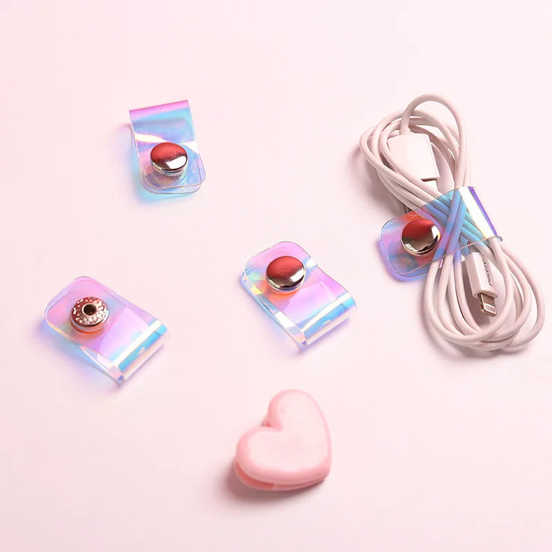 Laser Transparent Data Line Button Key Wallet Holders Portable Cable Winder