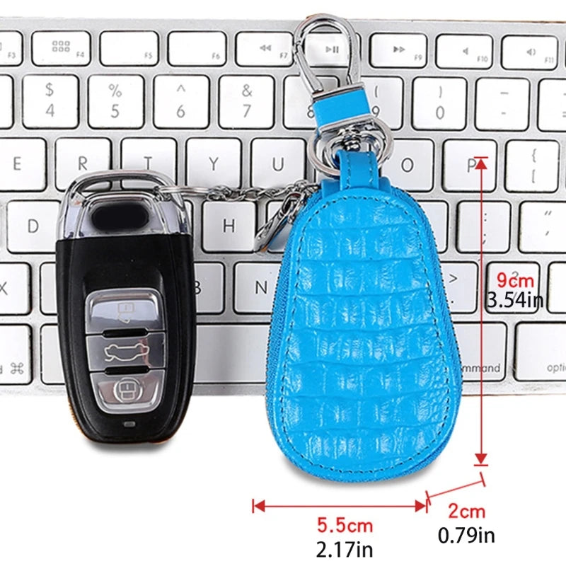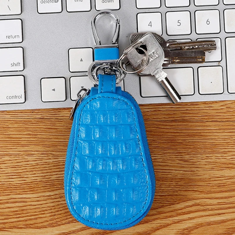 Leather Car Key Case Holder Cover Crocodile Grain Mini Bag Keychain Wallet Pouch