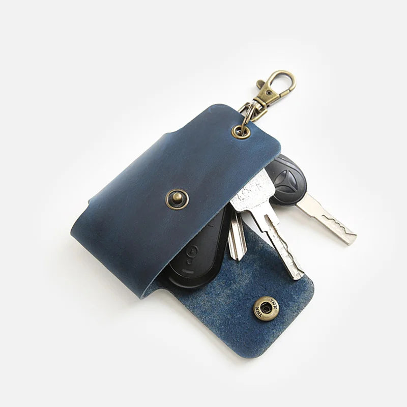 This leather key holder is a versatile key organizer that can securely store your keys. It features a smart design, making it easy to access your keys while keeping them organized. The compact size and purse shape make it convenient to carry around.