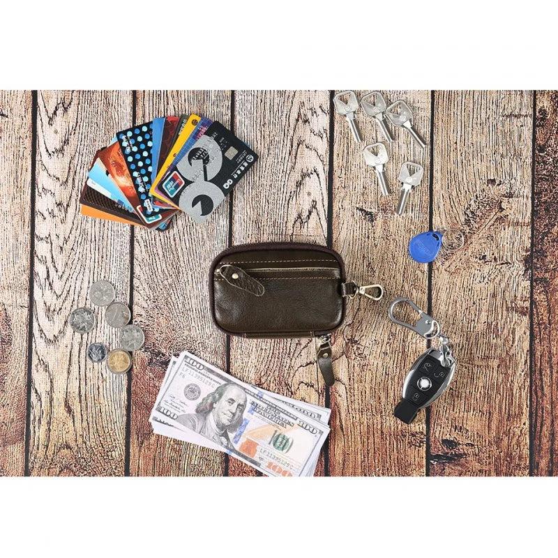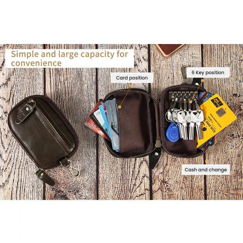 Description:This leather key wallet is designed to keep your keys organized and secure. It features a zipper closure for added protection.Features: Genuine leather construction for durability Compact design that fits easily in your pocket or bag Zipper closure to secure keys and prevent loss Multiple key hooks for organizing different...