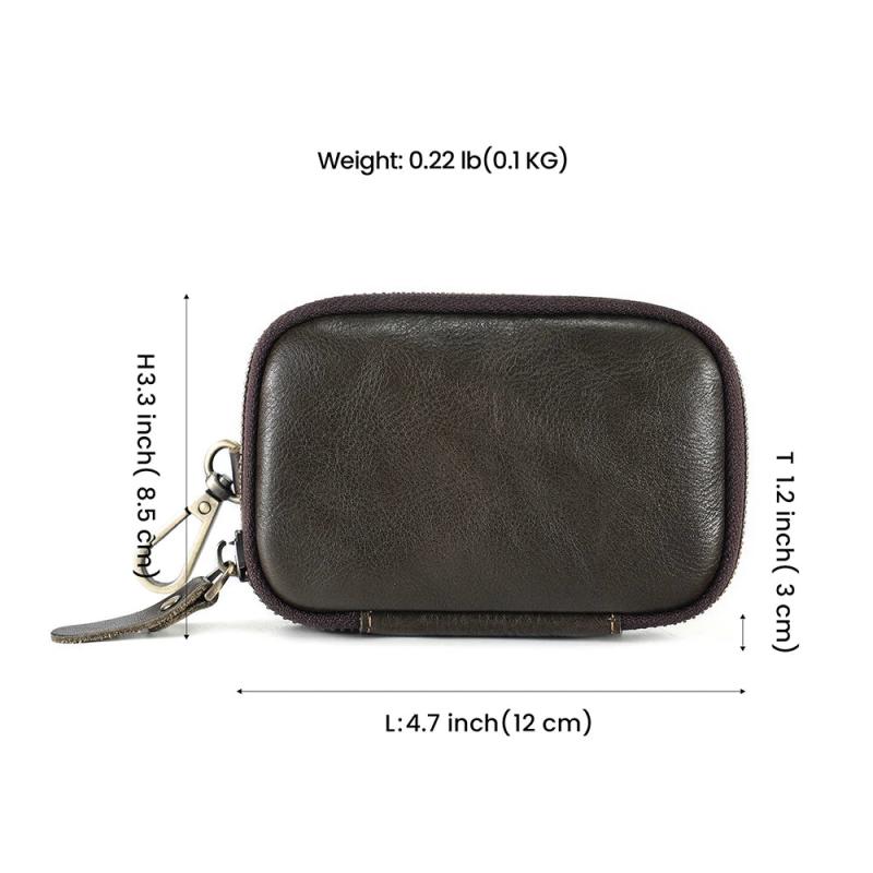 Keep your keys organized and secure with this leather key wallet. It features a zipper for added security and can hold multiple keys.