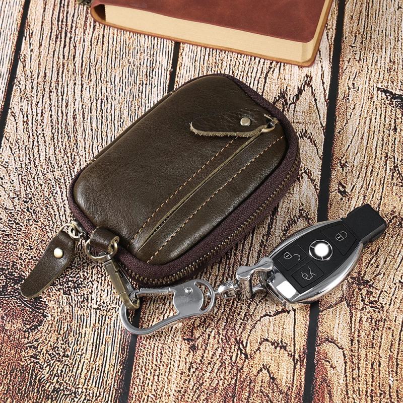 Leather Key Wallet Man Housekeeper Keys Organizer Car Key Holder Zipper