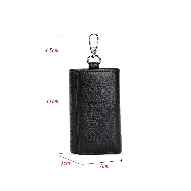 This multifunctional key wallet is made of cow leather, featuring a small size and a key chain to keep your keys organized and easily accessible.