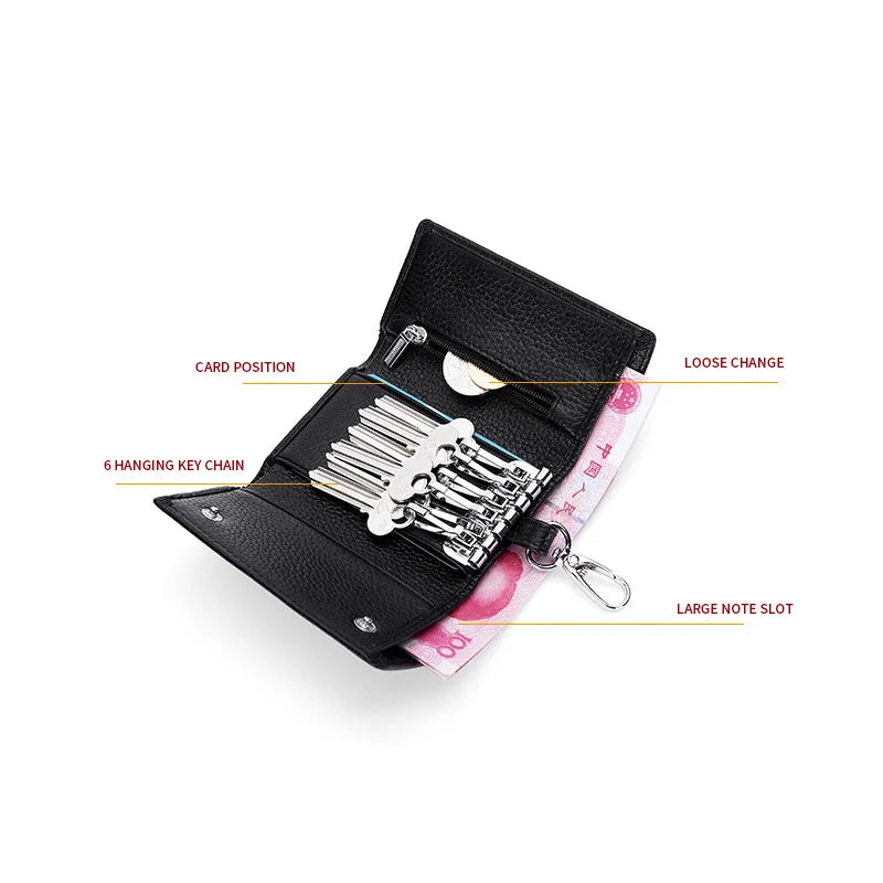 Leather Keychain Wallet Solid Multifunctional Key Case Cow Leather Key Wallet
