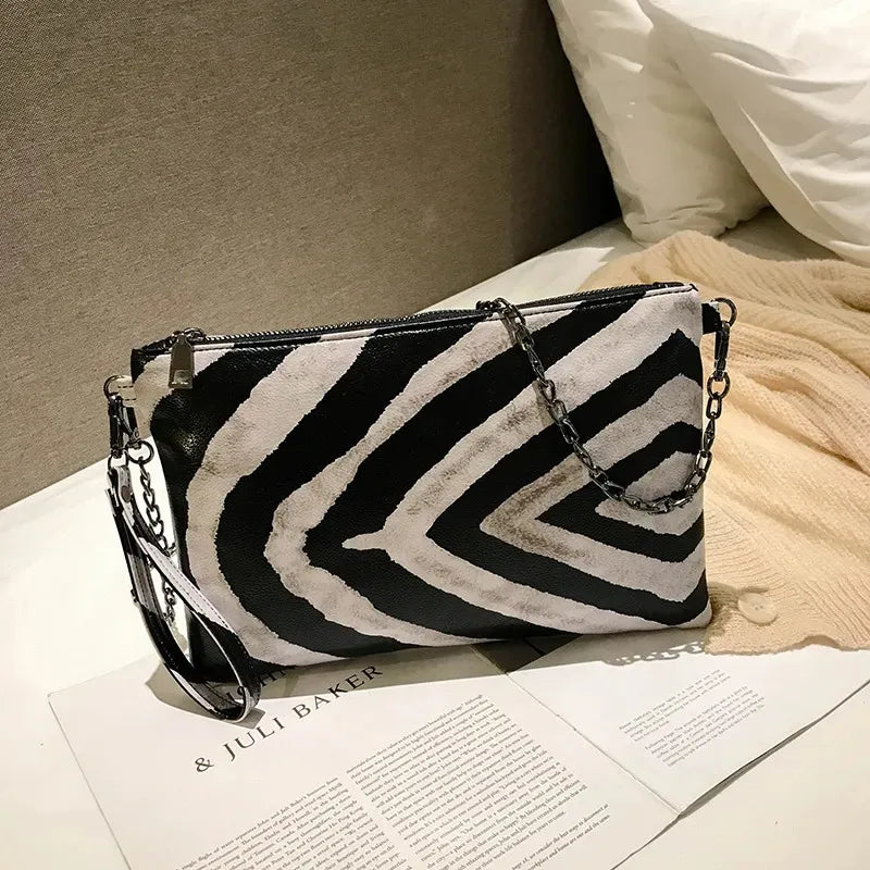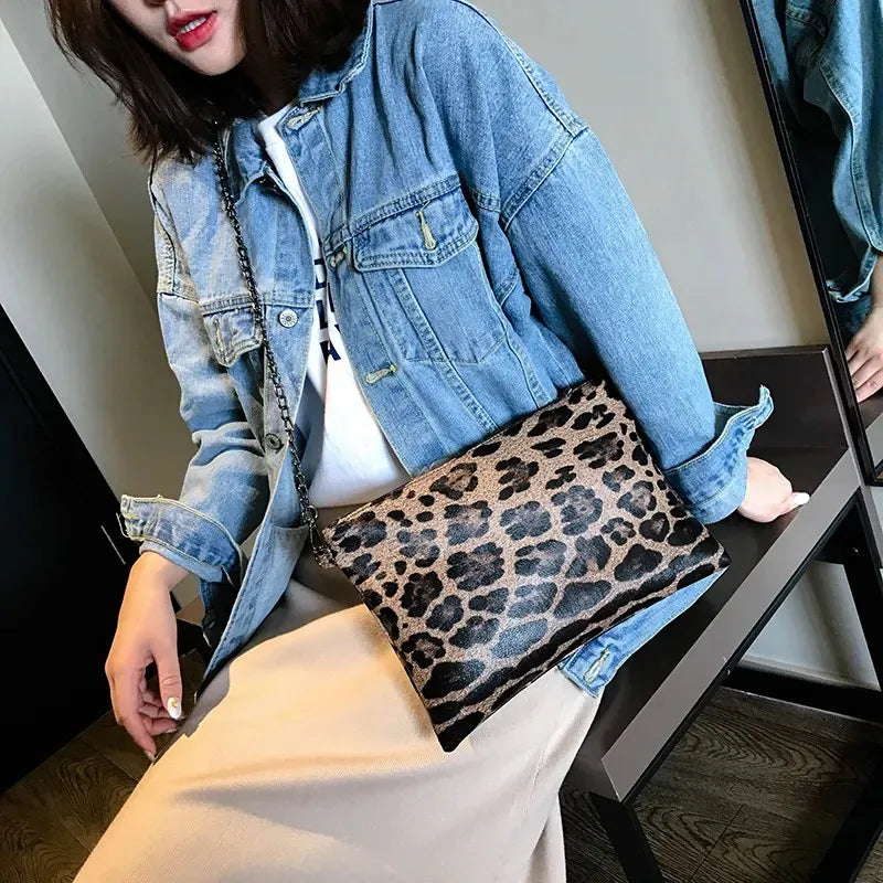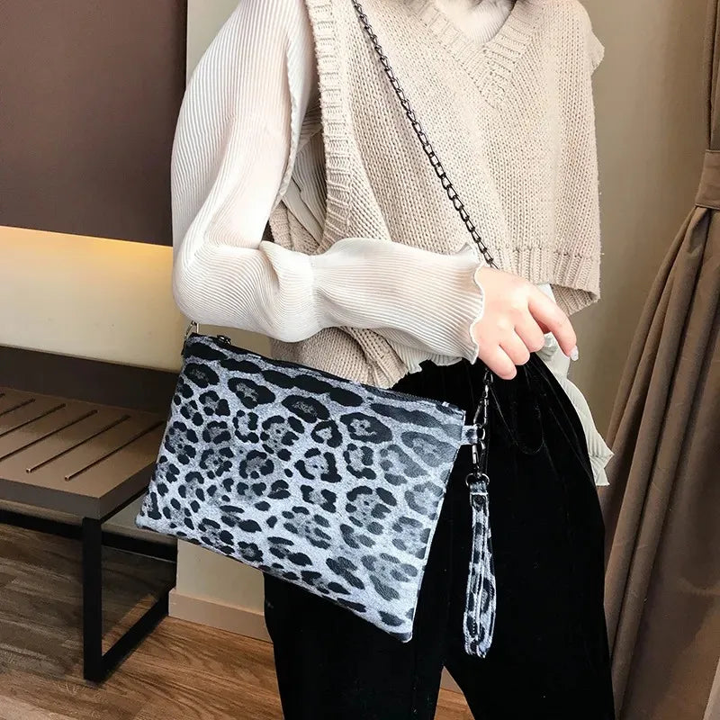 Elegant and stylish evening bag perfect for weddings, parties, and banquets. This leopard print shoulder bag doubles as a clutch purse.