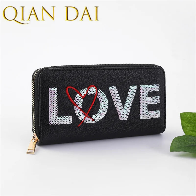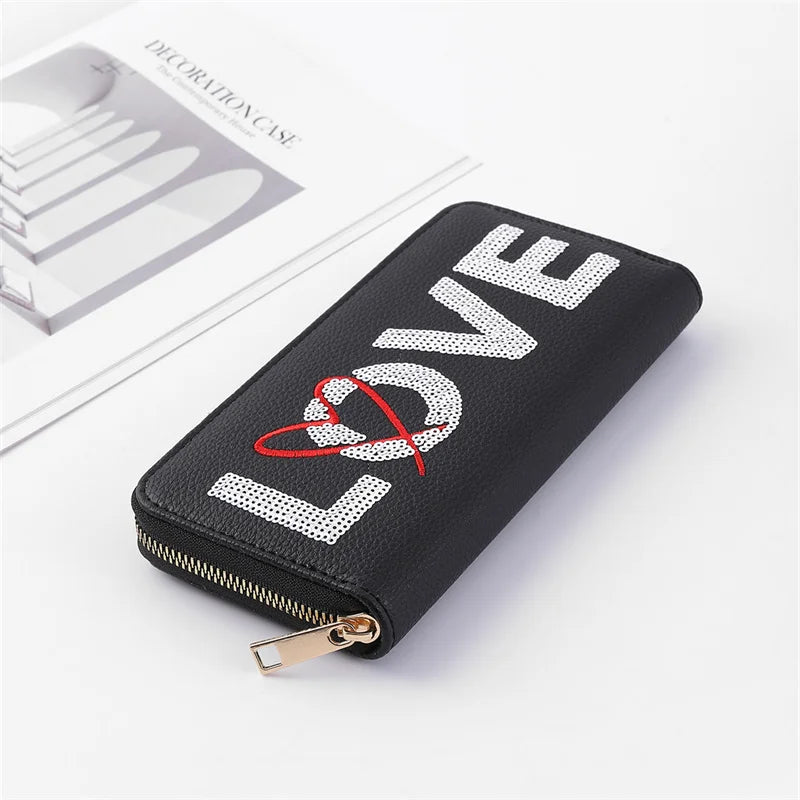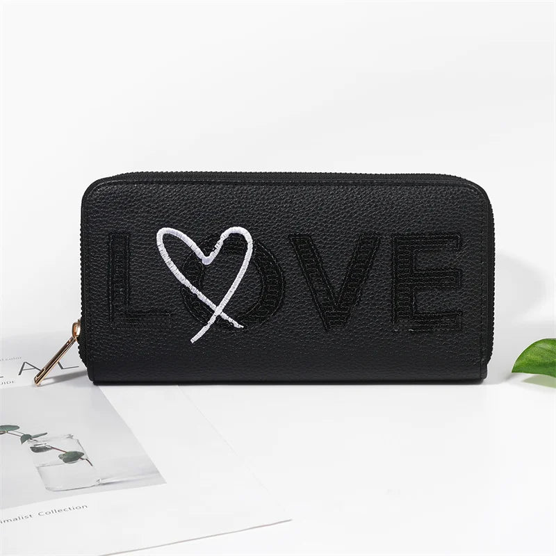 Love Wallet Unisex Casual Long Clutch Bag Pu Leather Embroidery Senior Wallet