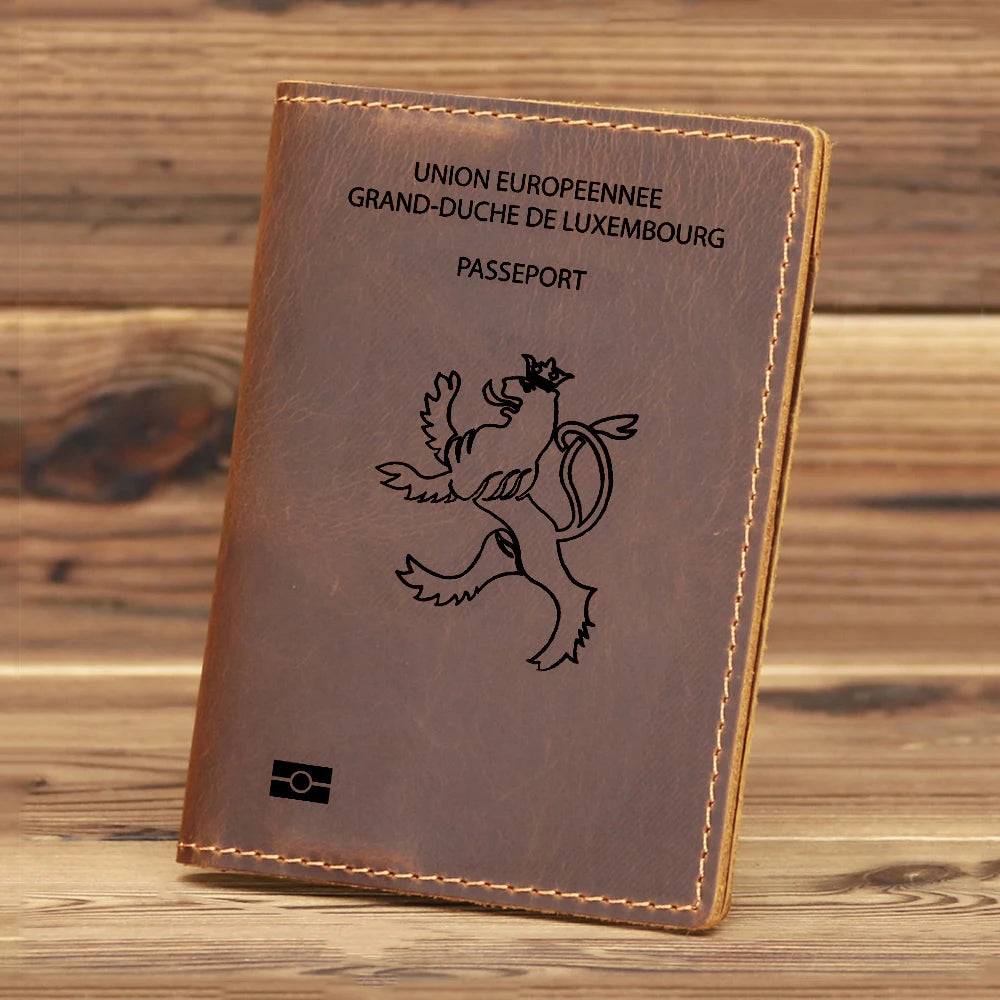 Luxemburg Passport Cover Cowhide Leather Holder Travel Wallet