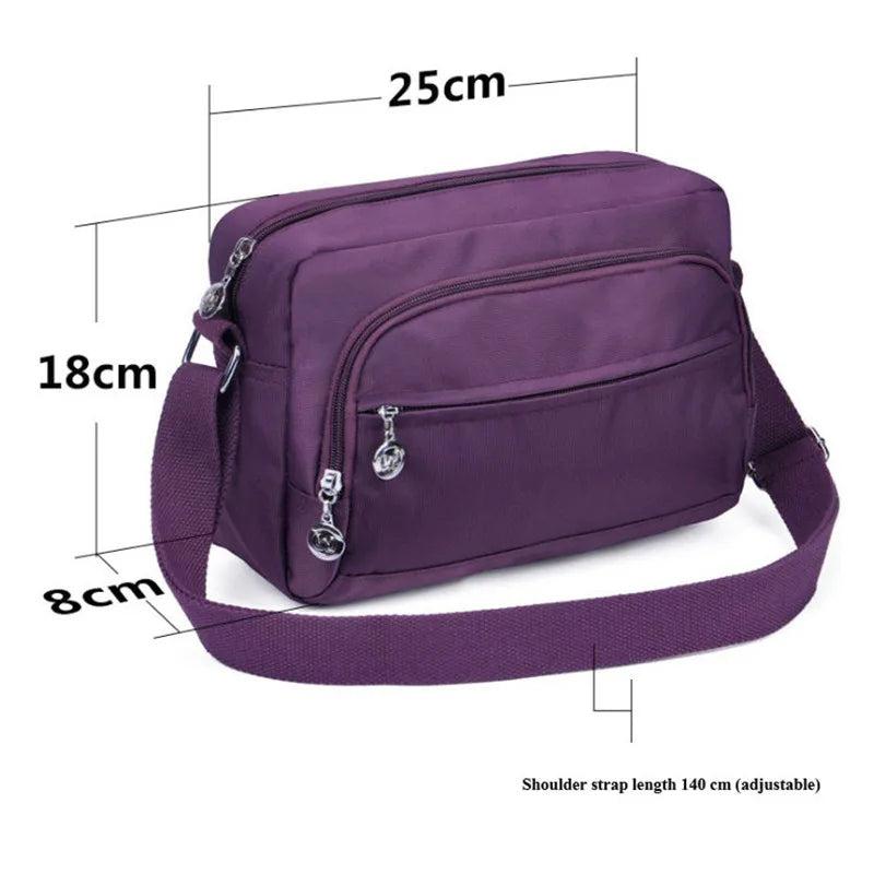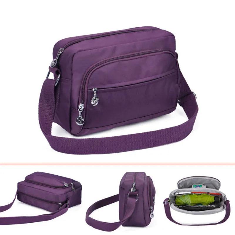 This versatile messenger bag is perfect for moms on the go. It is made of durable canvas and nylon material, suitable for travel, business, shopping, and more. It features multiple compartments and pockets for easy organization.