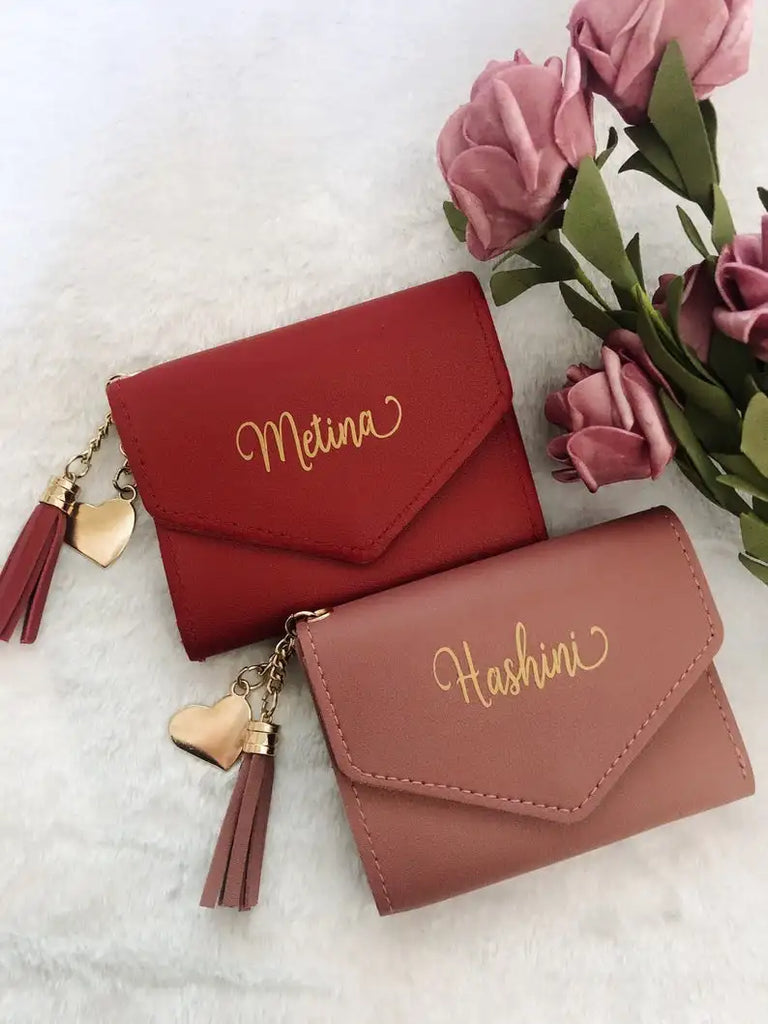 Beautiful trifold wallet with personalised name, perfect as a birthday gift, bridesmaid wallet, or Valentine's gift for her. Made with high-quality materials.