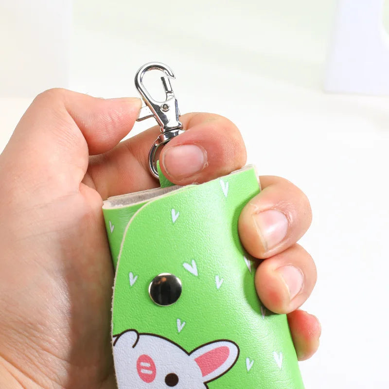 Keep your keys organized and secure with this portable leather key holder bag. Ideal for both men and women, this cute cartoon keychain storage bag is a convenient accessory for your daily essentials.