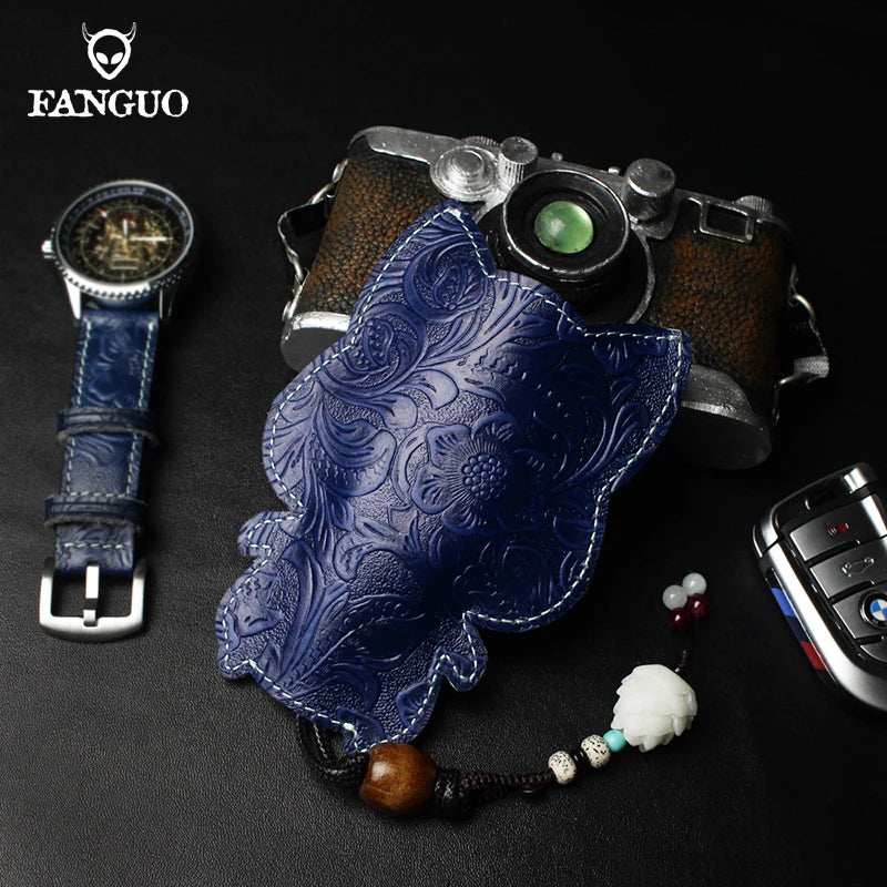This key wallet is made of high-quality leather and features a pull-type design for easy access to your keys. Keep your smart keys organized and secure.