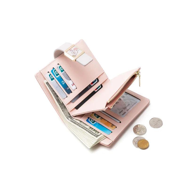 Stay organized with this small and fresh wallet featuring a three-fold design and a convenient zipper closure. The buckle adds a stylish touch.