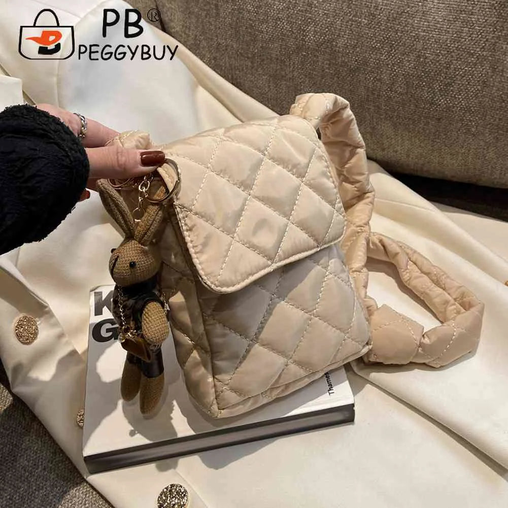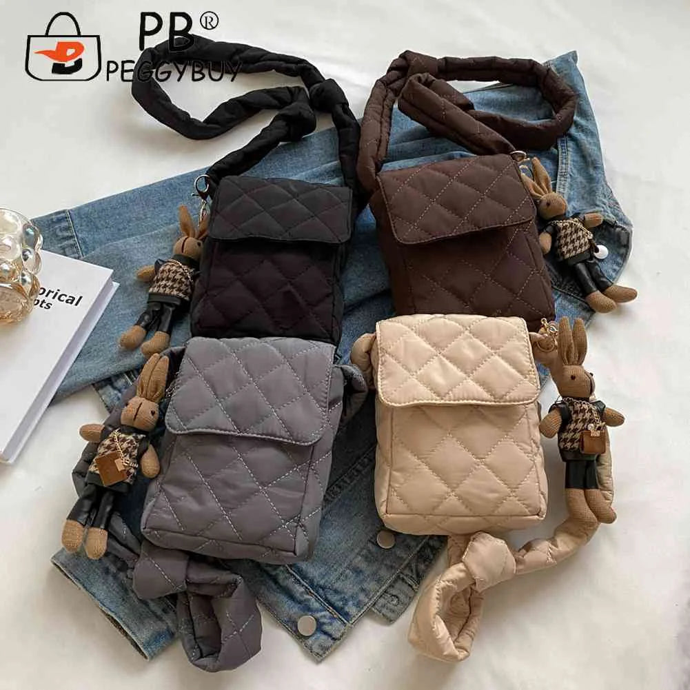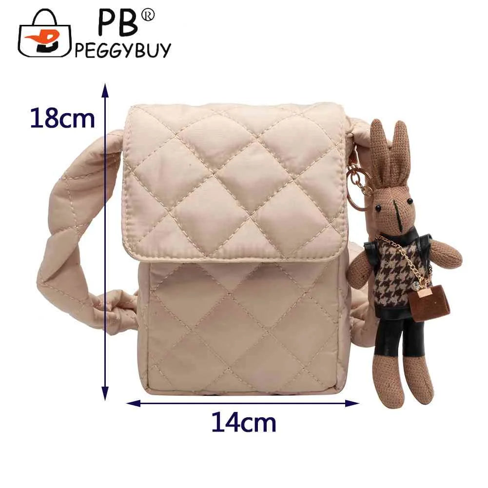 Stay organized and stylish with this flap mobile phone bag that includes rabbit toys and a rhombic lattice ladies wallet. Made of soft cotton, it's perfect for weekend getaways and vacations.