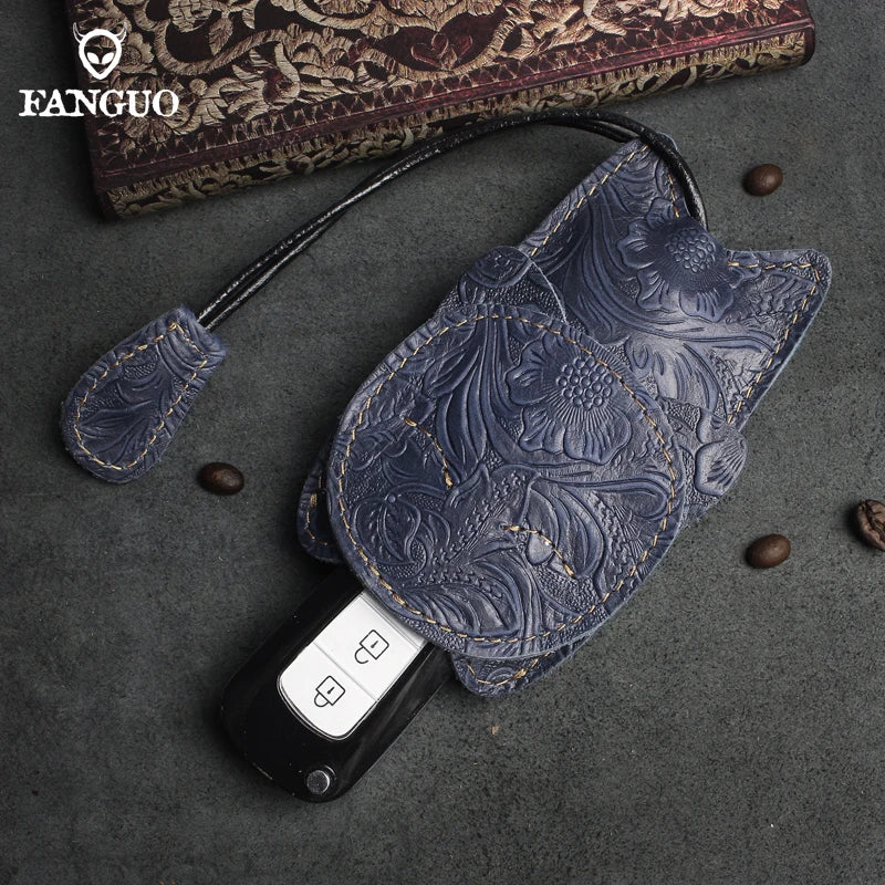Retro Cat Pull Type Key Bag Leather Key Wallet Car Smart Holder