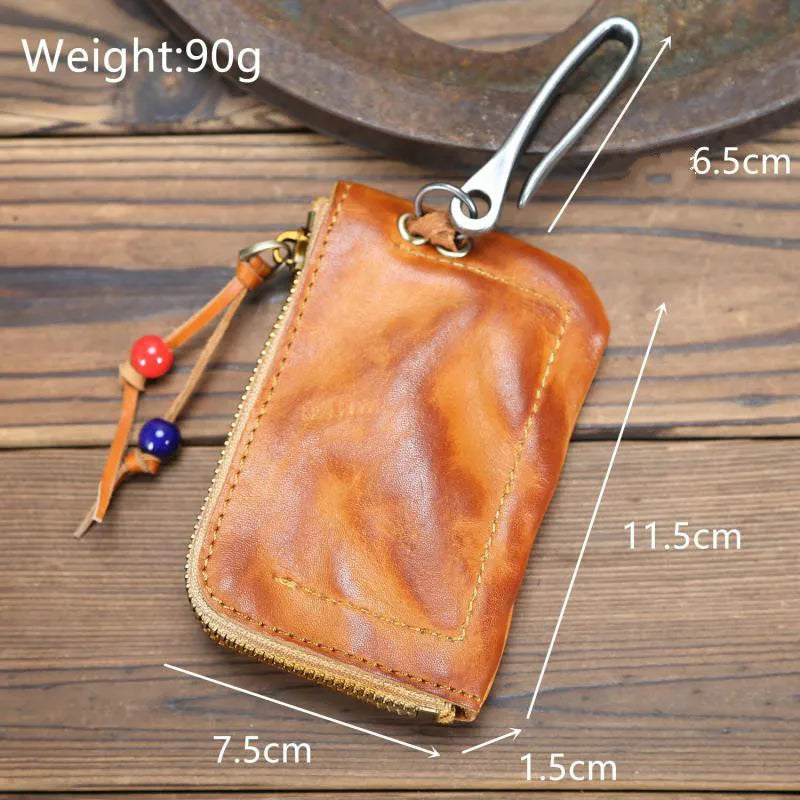 Keep your keys organized and secure with this retro key holder made from first layer cowhide leather. It's a practical and stylish accessory for both men and women.