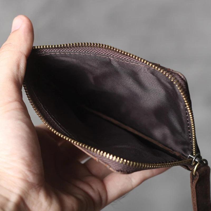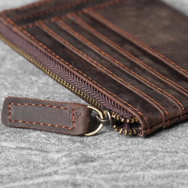 Stay organized with this vintage-style leather wallet that features multiple card slots, a spacious interior, and a zero wallet design.