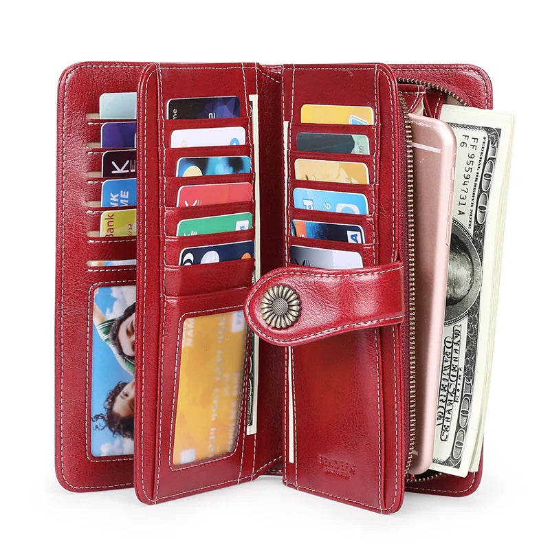 RFID Leather Lady's Purse Long Hand Bag Cow Leather Lady's Wallet