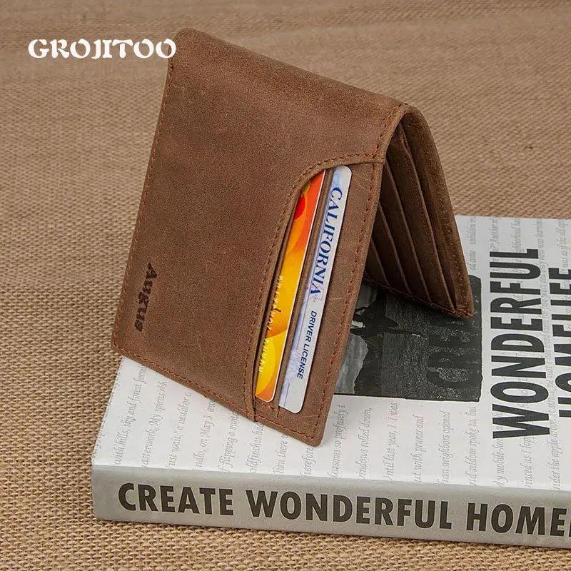Protect your credit cards from unauthorized scanning with this RFID shielded leather wallet. Made of high-quality leather, this short wallet is both stylish and secure.