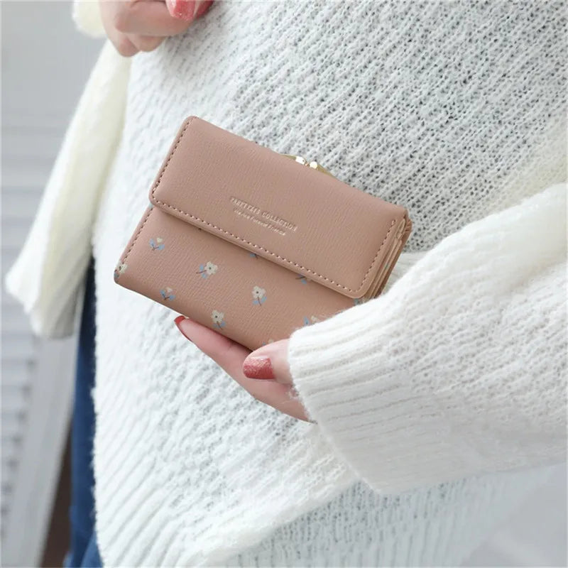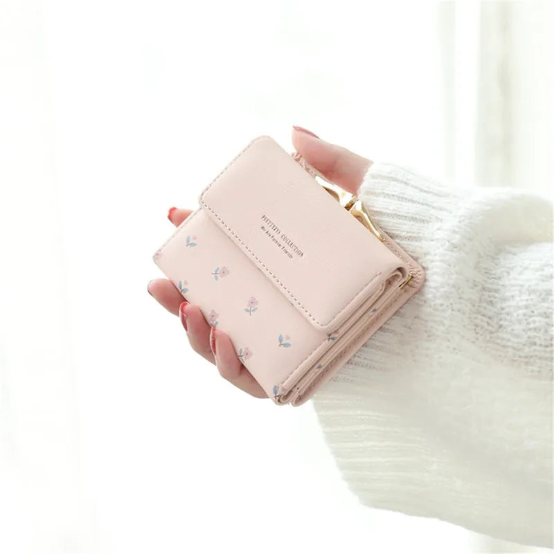 Small Fresh Mini Ladies Money Clip with Flowers Short Buckle Wallet