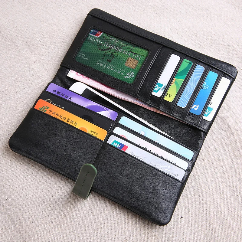 This soft leather wallet is made of high-quality cowhide leather, featuring a long buckle design. It is multifunctional and can hold your phone, cash, cards, and more.