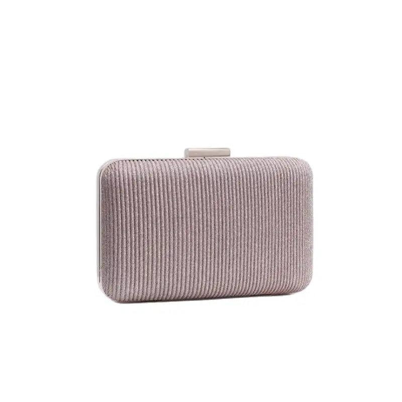 This elegant clutch bag is perfect for weddings, dinners, and banquets. It features a stylish striped design and comes with a chain for versatile carrying options.