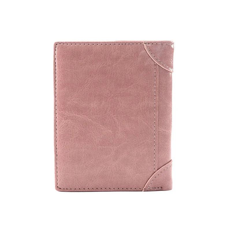This stylish two-fold wallet is perfect for women on the go. It features multiple card slots, a coin pocket, and a bill compartment.