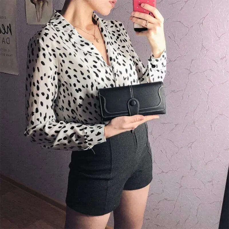 Vintage Frosted Buckle Long Wallet Matte Leather Lady Purse