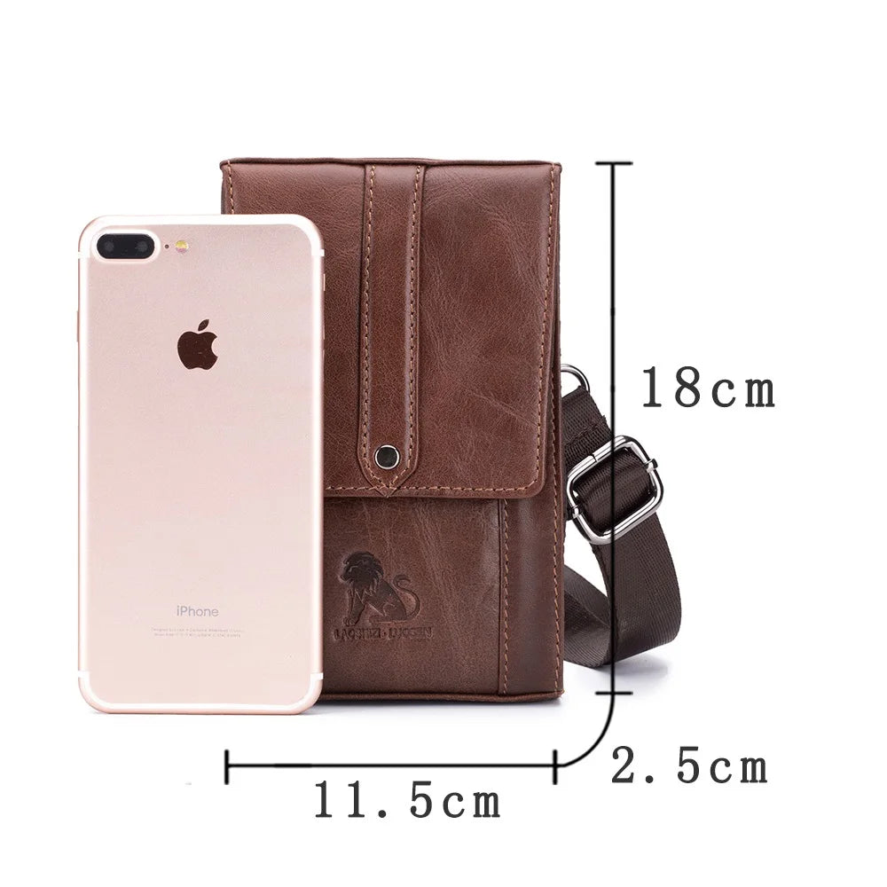 This vintage leather waist pack is perfect for travel or daily use. It features a large wallet compartment and small phone pouch to keep your essentials organized.