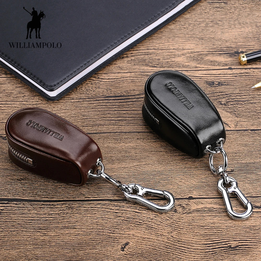 WILLIAMPOLO Leather Key Bag Zipper Wallet Multi-function Waist Key Bag
