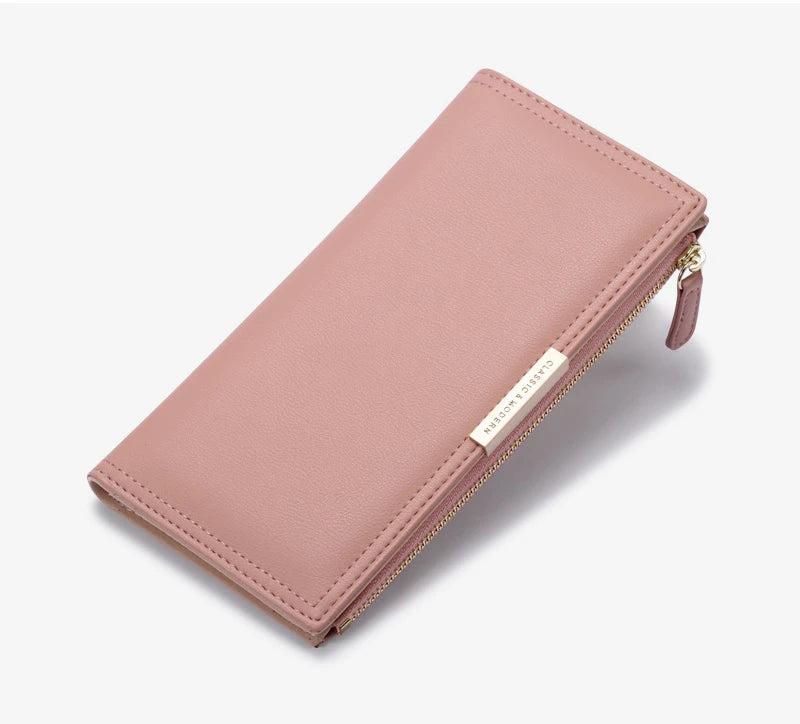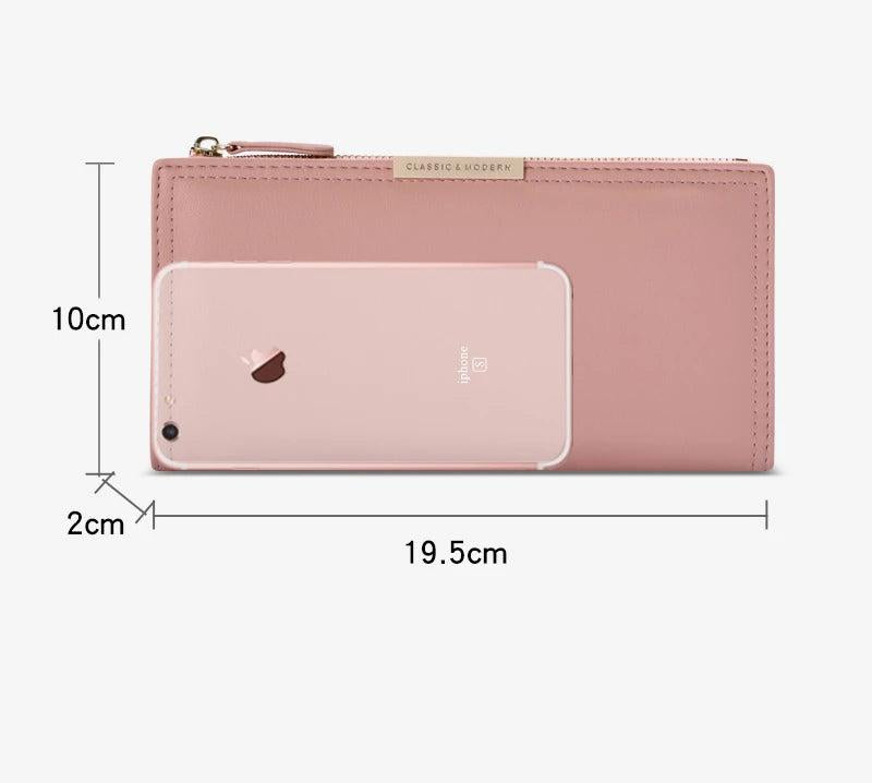 A stylish and versatile long wallet that doubles as a clutch purse for women.