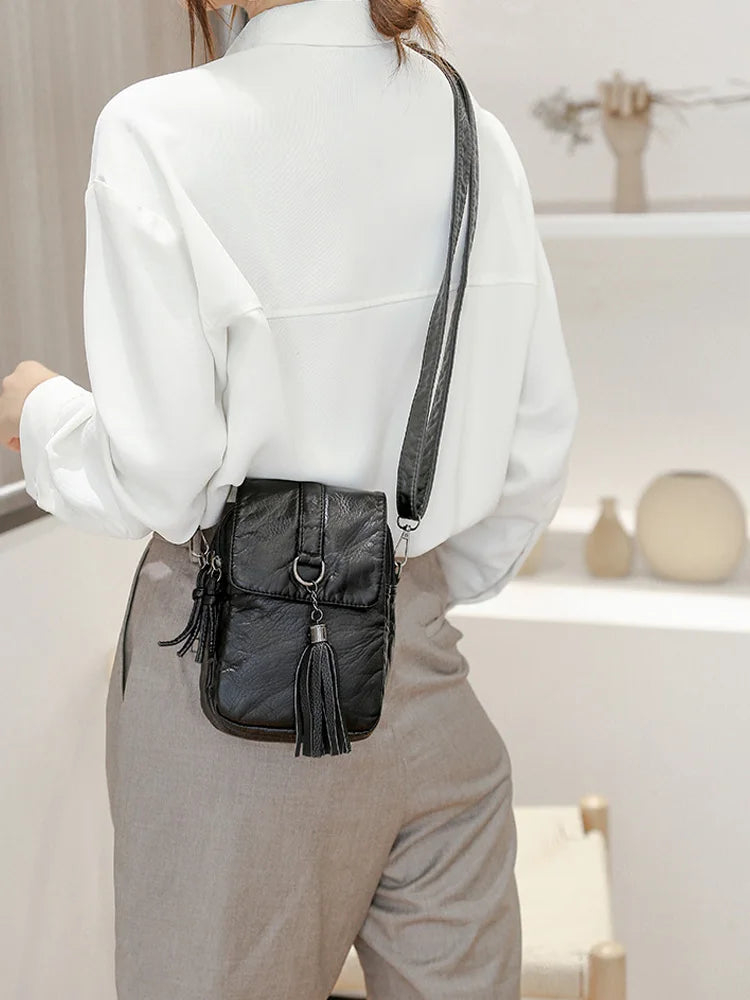 This versatile mini messenger bag is perfect for carrying your phone, wallet, and other essentials. It features a convenient shoulder strap for easy wear.