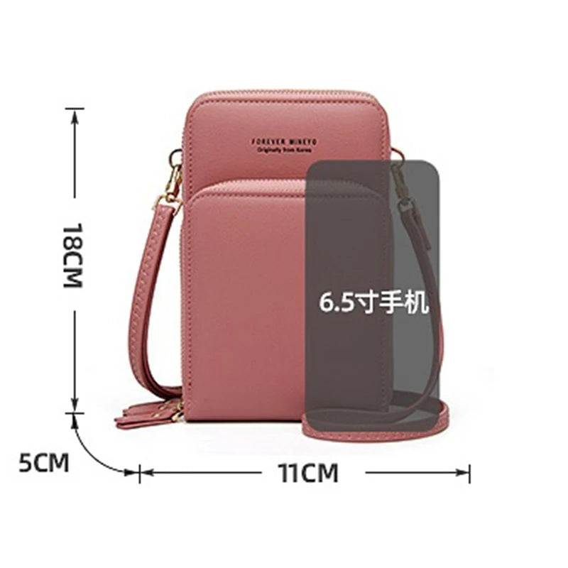 Women's Touch Screen Phone Bag Large Capacity Soft Leather Shoulder Wallet