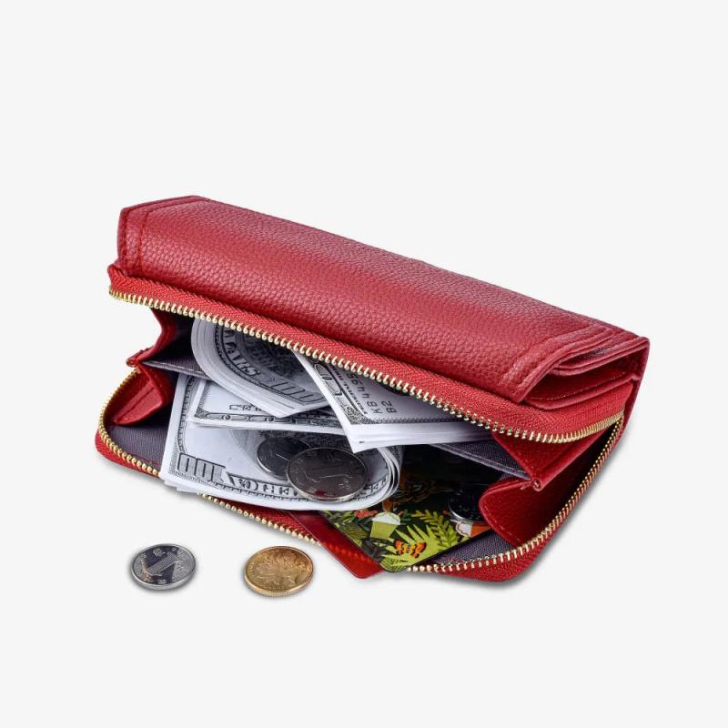 This ladies wallet is a stylish and versatile accessory with multiple compartments for cards, cash, and coins. The zipper closure keeps your essentials secure.