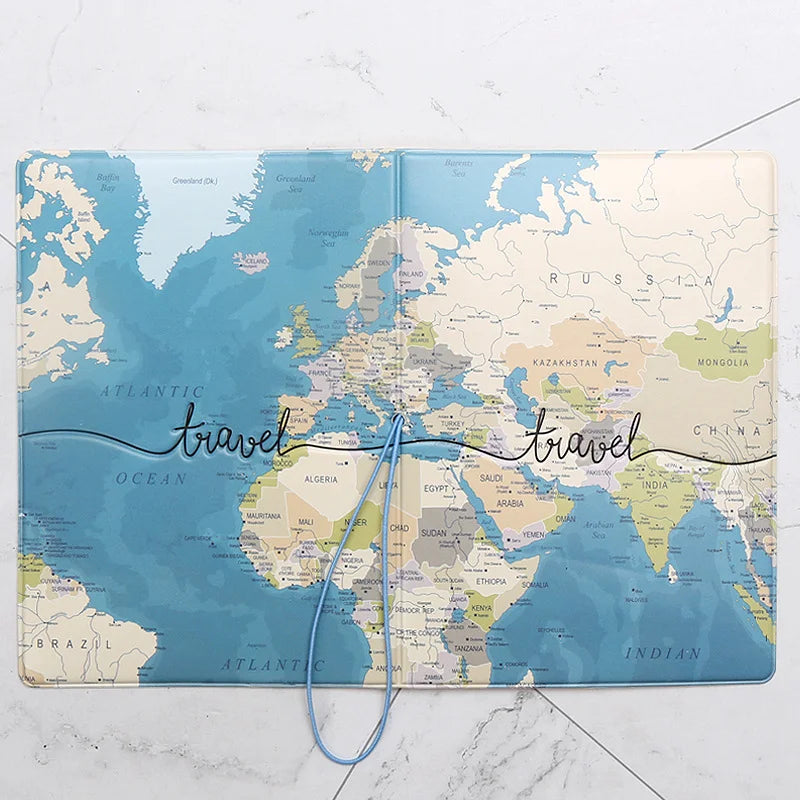 Stay organized and stylish while traveling with this creative world map passport cover wallet. Made of durable PU leather, this portable boarding wallet case is the perfect travel accessory.