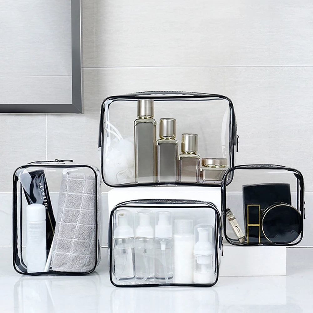 This 4-piece set of waterproof clear bags is perfect for travel, business trips, and bathroom organization. The zipper closure keeps your items secure.