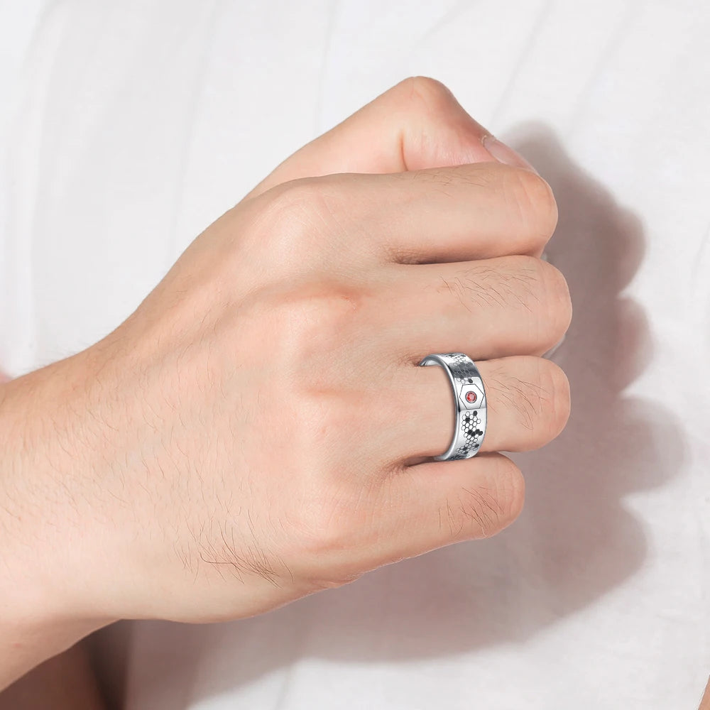 Description:This ring features red zircon stones in an organic molecular pattern on tungsten steel, making it a unique wedding jewelry gift for men.Features: 8mm ring with red zircon stones Organic molecular pattern design Made of durable tungsten steel Ideal for weddings or as a gift Available in sizes 7-12 This...