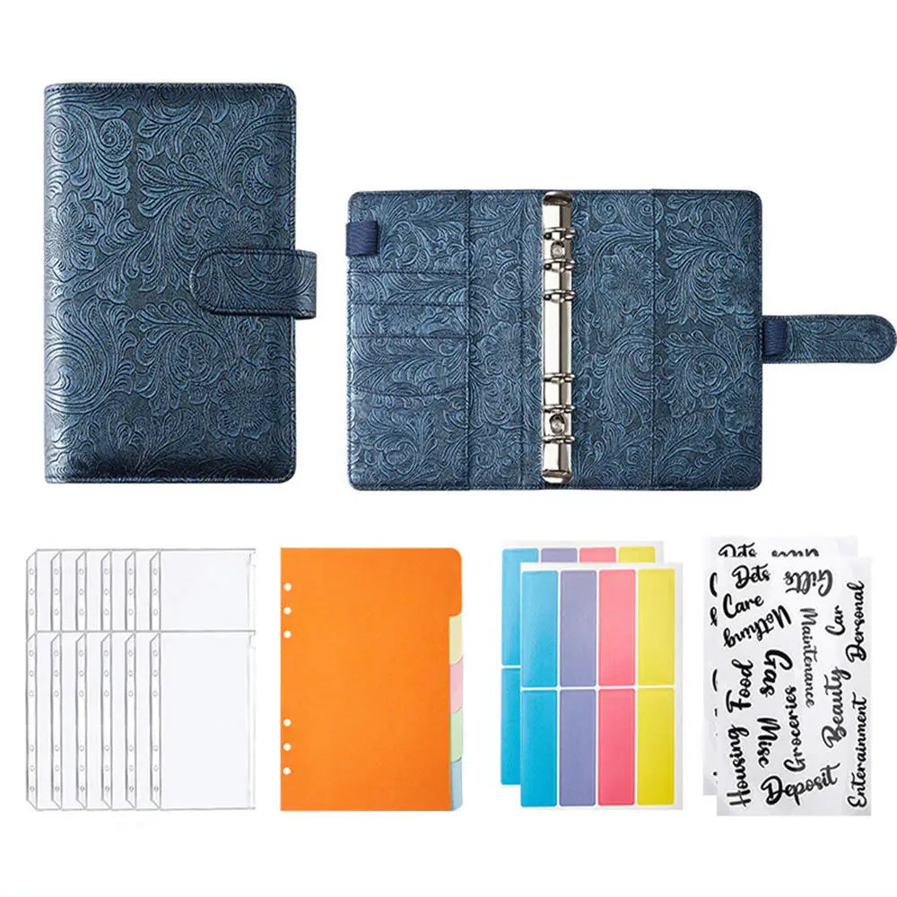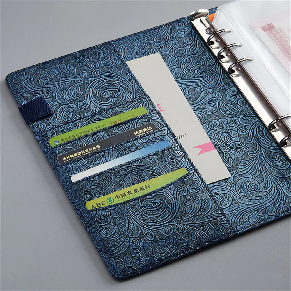 Stay organized with this A5/A6 leather binder featuring pockets, zipper, and cash envelopes for budget planning.