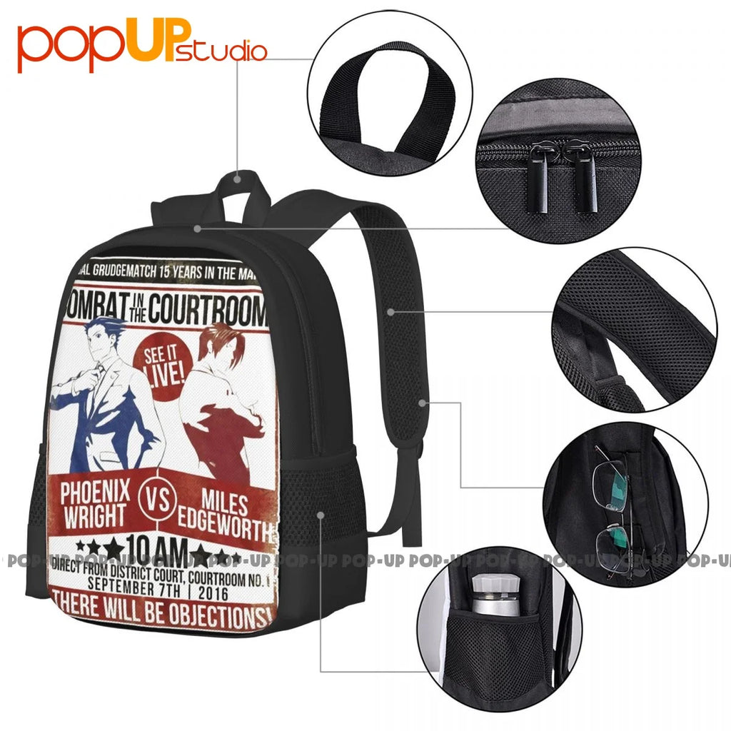 Carry your essentials in style with this large capacity Ace Attorney themed backpack featuring Phoenix Wright and Edgeworth. Perfect for fans of the game!