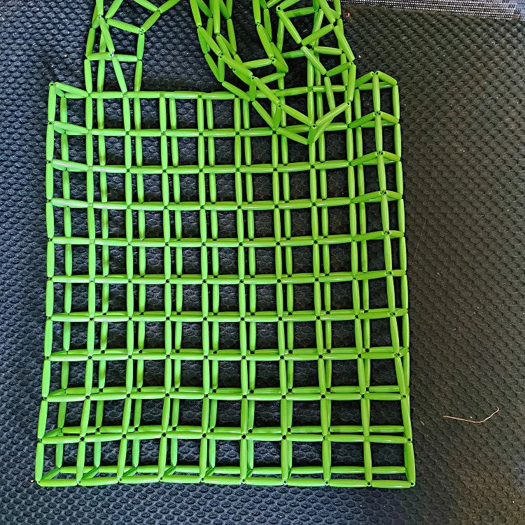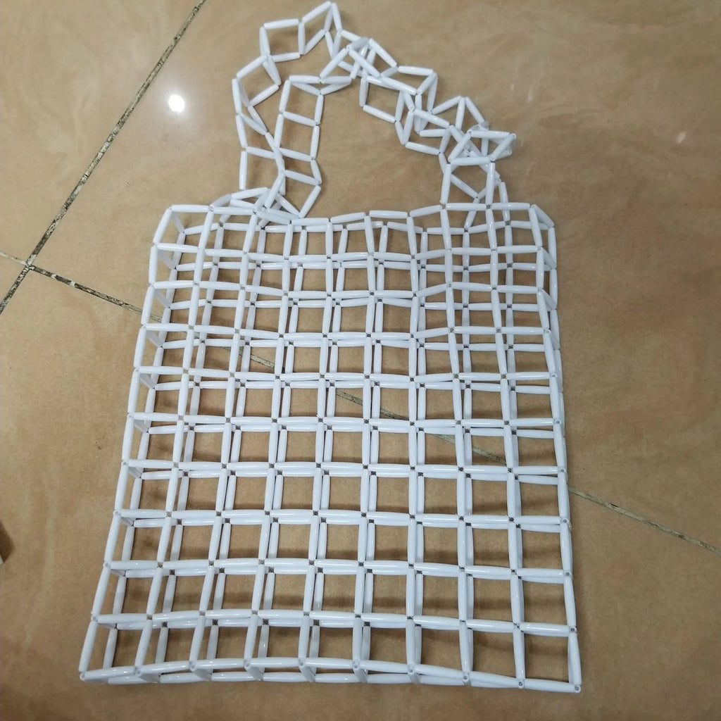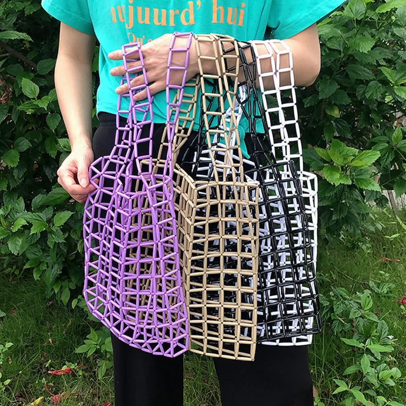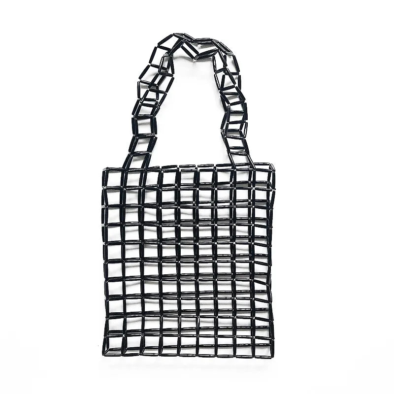 Stylish and trendy shoulder bag perfect for summer holidays and beach outings. Features a unique hollow out design and made of high-quality acrylic beads.