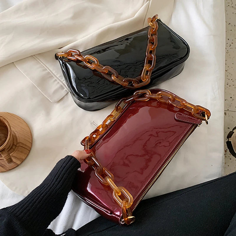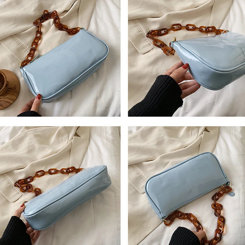 Acrylic Chain Shoulder Handbag Ladies Travel Purse Solid Daily Sling Bag