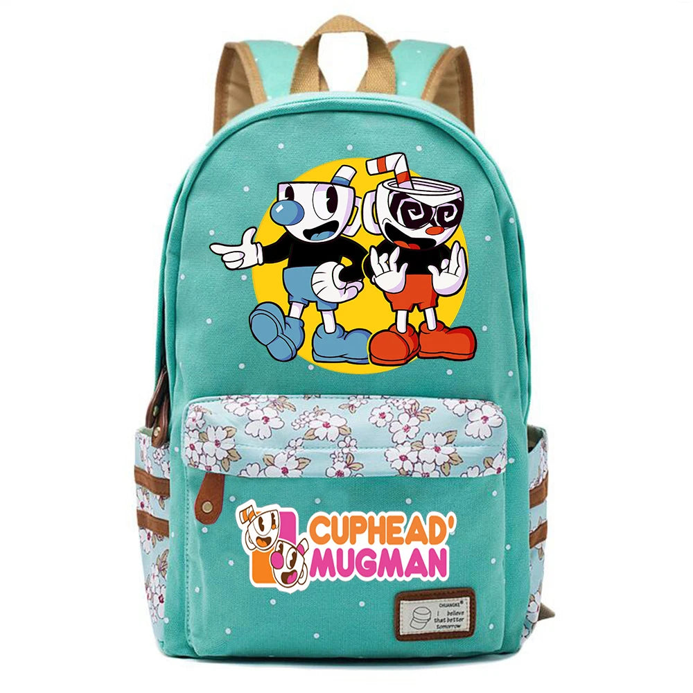 This canvas backpack features Cuphead cartoon design, perfect for teengers. It is suitable for school, travel, and everyday use.